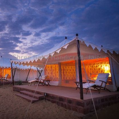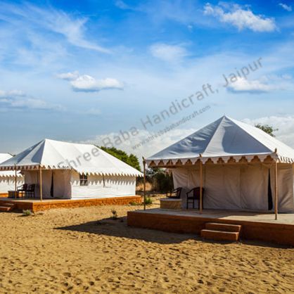 Canvas Swiss Tent Manufacturer in India, Canvas Swiss Tent Supplier & Exporters in India, Canvas Swiss Tent in India, Canvas Swiss Tent at Best Price in India. The Canvas Swiss Tent are made of light canvas cloth and it is easy to set up. Only ropes, nails and a hammer are required to set it up. It has got all amenities that one requires to live in a tent. It has got one main room and the entire set up is done inside it including a bed and other necessities. It is supported using steel rods so the setup is quite strong and does not require any other support.